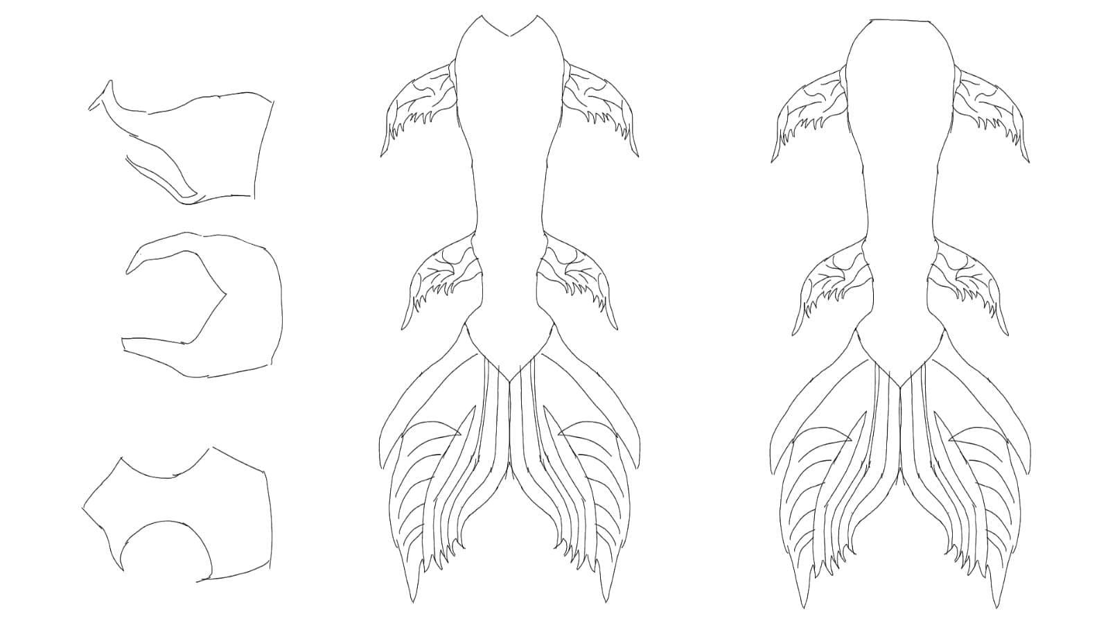 - Extra fins: pairs of fins (hips, calf, ankles) or dorsal,